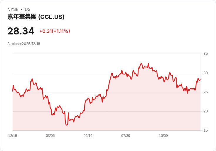 嘉年華郵輪公佈第四季非GAAP每股盈餘0.34美元,超過預期;但營收63.3億美元未達預測。2026年展望樂觀,預計淨收益增長12%。