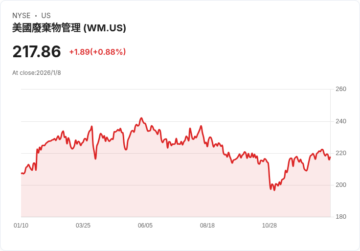 在最新交易中,Waste Management (WM) 股價上漲1.7%,瑞士銀行(UBS)宣佈將該公司的評級從中立提升至買入,目標價格也由225美元上調至260美元。分析師Jon Windham指出,自2024年第一季以來暫停的股票回購計劃預計將於2026年恢復,這可能導致股東資本回報提高約2.5倍。