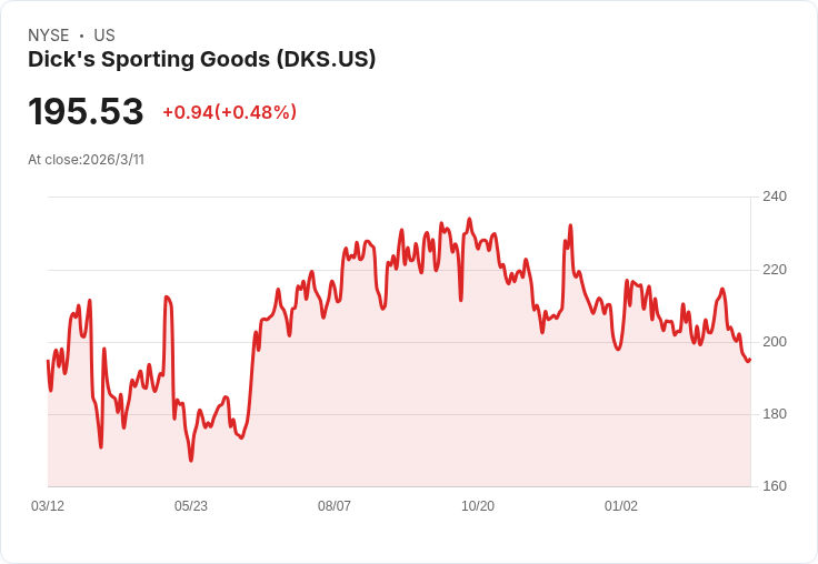 Dick's Sporting Goods於週四表示,儘管假期季度表現好於預期,但因收購Foot Locker而面臨巨大財務壓力,導致公司對2026財年的獲利指引顯示疲軟。根據LSEG資料,該公司預計調整後每股收益將介於13.50至14.50美元之間,低於分析師預期的14.67美元。