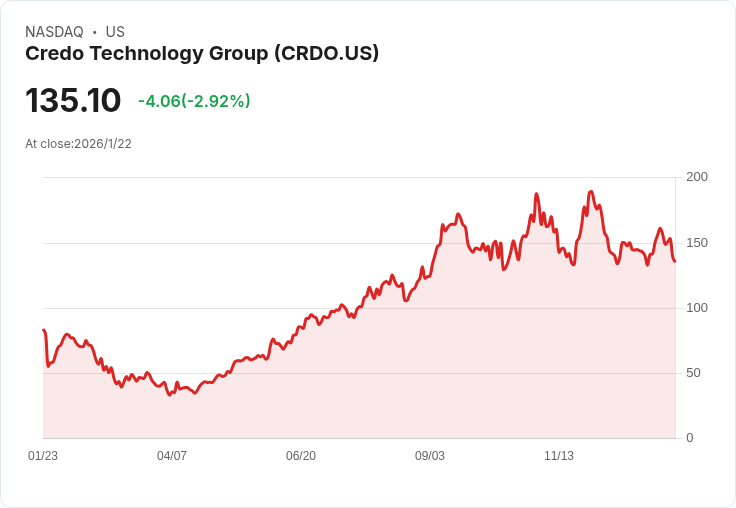 Credo Technology Group Holding Ltd(NASDAQ:CRDO)近期受到投資者關注,被認為是目前Russell 2000指數中最佳的股票之一。1月16日,巴克萊的Thomas O’Malley重申了該股的買入評級,並將目標價由220美元提升至260美元。此外,Needham的Quinn Bolton也在1月9日重申了對Credo的買入評級,目標價同樣為220美元。