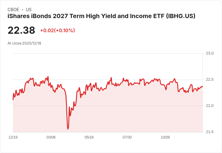 iShares iBonds 2027 Term High Yield and Income ETF(程式碼:IBHG)近日宣佈,將於12月24日向股東發放每股0.1136美元的現金分配。這項訊息吸引了投資者的注意,尤其是在當前經濟環境下,高收益產品備受青睞。根據最新資料,截至12月17日,該ETF的30天SEC收益率為5.58%,顯示出其穩健的收益表現。