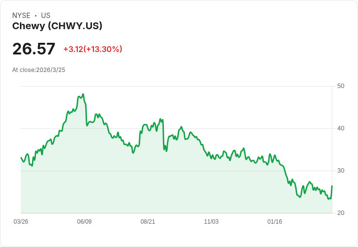 儘管Chewy在最新財報中略微未達預期,股價卻因其樂觀的2026年展望而激增超過12%。公司預計2026年的營收將介於136億到137.5億美元之間,高於市場共識的135.9億美元。在最近一季中,Chewy實現了32.6億美元的收入,同比增長0.5%,符合分析師預期。然而,調整後每股收益為0.27美元,低於預期的0.28美元。