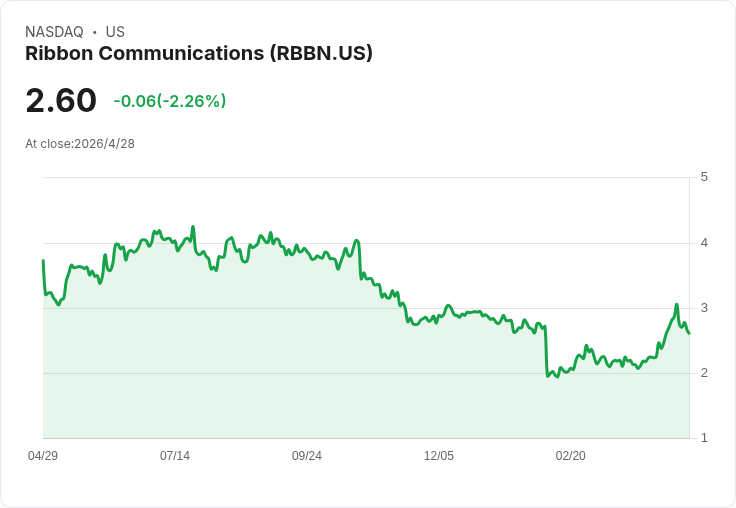 新聞 : Ribbon Communications(NASDAQ: RBBN)在2026年第一季財報與法人說明會中交出符合預期的Q1業績,同時發布第二季營收與獲利指引,並宣佈財務長(CFO)人事變動,引發市場對執行力與資金結構的關注。
