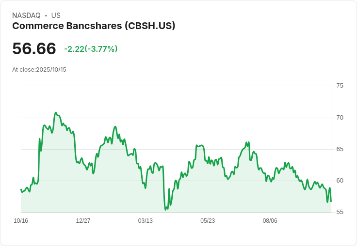 Commerce Bancshares 公佈第三季財報,每股盈餘為 $1.06,未達市場預期;營收為 $440.97M,也低於預估。