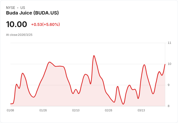 Buda Juice, Inc. 公佈最新財報,顯示每股盈餘達0.20美元,年度營收12.61百萬美元,創下成長佳績。