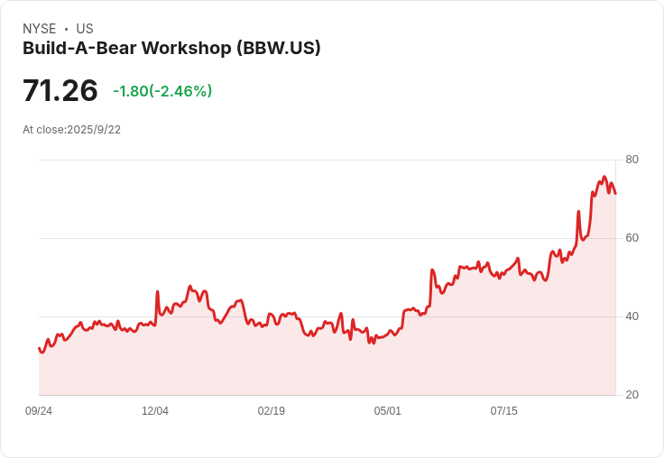 儘管面臨關稅和購物中心流量不振,Build-A-Bear的股價自2025年初以來上漲超過60%。公司報告創紀錄的財務表現,展現出其強勁的市場需求。