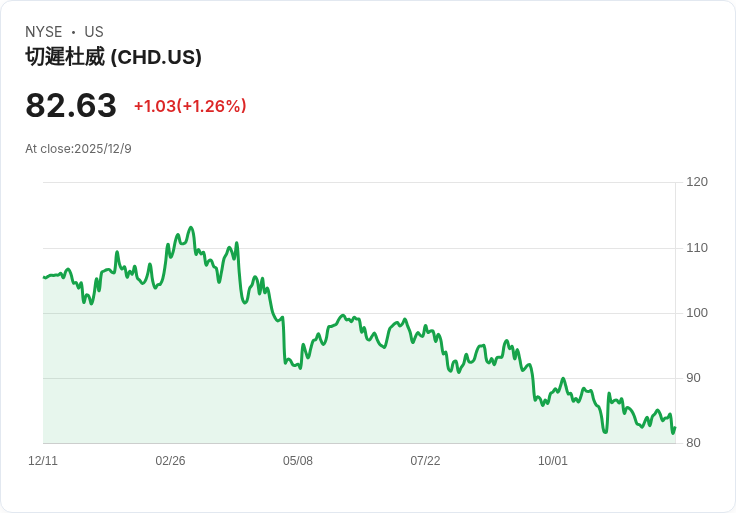 分析師Steve Powers指出,雖然短期內可能會因為固定開支而導致輕微稀釋,但該交易消除了對收入增長的重大拖累,未來有望改善財務狀況。他們已下調了近期的預測以反映交易影響,而Oppenheimer的Rupesh Parikh則認為市場對此次資產出售持樂觀態度,可能會即時提振CHD的有機增長率。隨著股價上漲2.3%,目前的投資水平被視為長期投資者的吸引入場點。