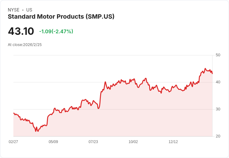 標準汽車產品(SMP)在2025年第四季表現強勁,全年銷售增長超過22%。公司預測2026年將實現低至中單位數的銷售增長。