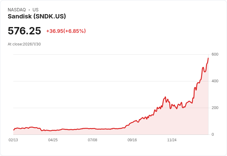 Sandisk (NASDAQ:SNDK) 在2026財年第2季利潤暴增672%,股價一度飆升至676.69美元,創下歷史新高。