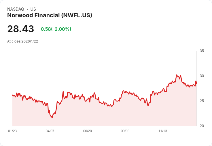 諾伍德金融公司(Norwood Financial Corp.)近日發布其2025年第4季度的財報,引起市場關注。該公司本季度的GAAP每股盈餘(EPS)為$0.80,整體收入達到$2345萬,顯示出穩健的業務表現。根據報告,2025年全年的完全稀釋每股盈餘則攀升至$3.01,顯示出相較於前一年明顯的成長。