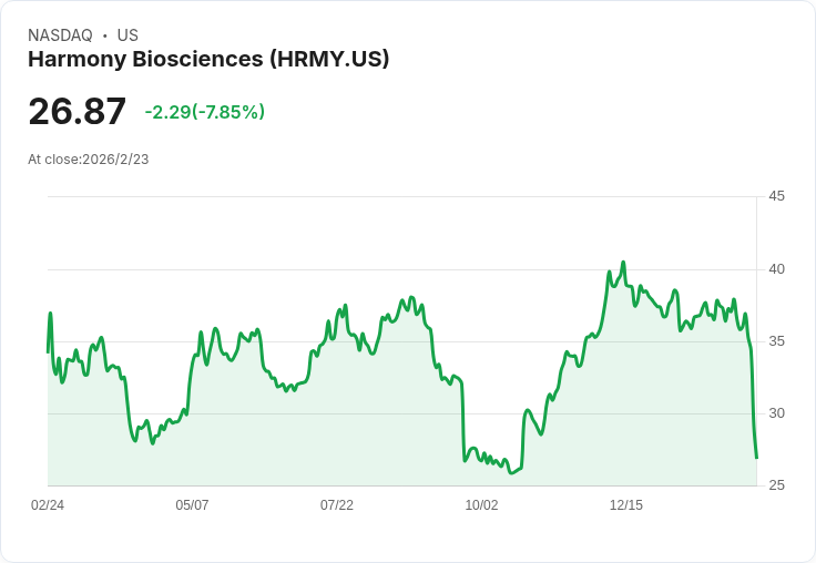 在週一的交易中,Harmony Biosciences(HRMY)股價大幅下滑約10%,這是因為德意志銀行和Truist兩家投資機構相繼下調了該公司的股票評級。分析師指出,Harmony正在進行的一場智慧財產權訴訟,其判決結果似乎對公司不利,特別是涉及其主打藥物Wakix(皮託利桑),該藥物已獲批用於治療過度白天嗜睡症。