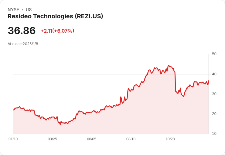 根據預測,自由現金流折現模型顯示Resideo的內在價值約為41.50美元,目前股價36.86美元,顯示出其相對合理的市場定位。