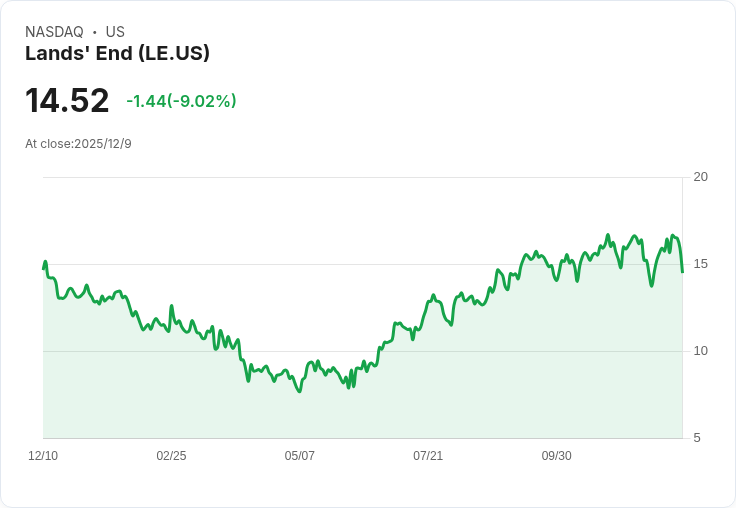 摘要:Lands' End 於第三季報告中顯示出穩健的成長與利潤回升,並預測全年度營收將達13.3至13.6億美元,品牌影響力持續擴大。