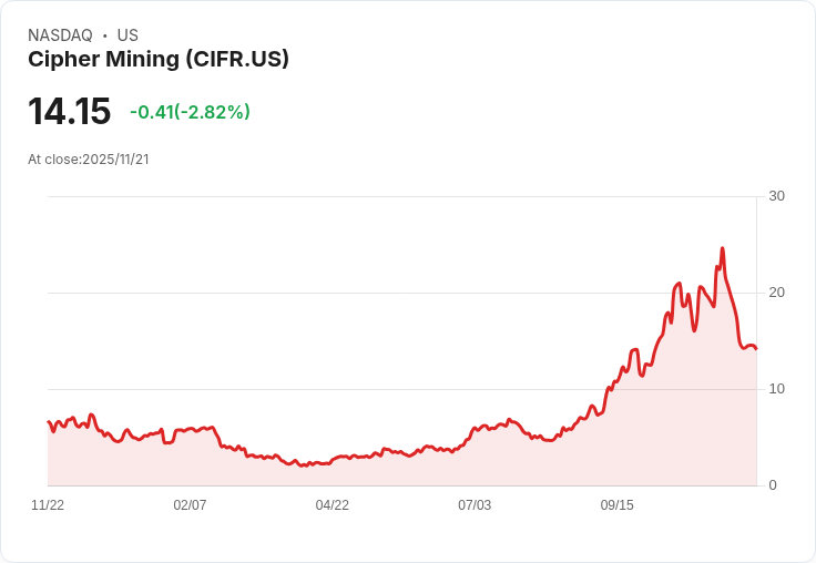 11月19日,Citizens開始對Cipher Mining進行覆蓋,給予「市場優於大盤」的評級,目標價格定為30美元。該機構指出,Cipher正從純位元幣挖礦轉向利用其位於德克薩斯州的3.8吉瓦電力管道,認為這一資產未來有望支撐超過90美元的估值。分析師Greg Miller提到,公司2026年的擴充套件計畫使其在高性能計算市場中佔據罕見位置,其容量甚至可以與大型專案如Stargate競爭,助力Cipher成為主要資料中心運營商。