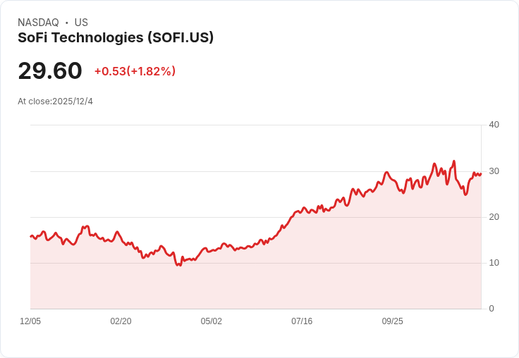 SoFi 宣佈進行 15 億美元的公開股票發行,計劃用於增強資本及推動業務成長。市場反應冷淡,股價下跌 4.7%。