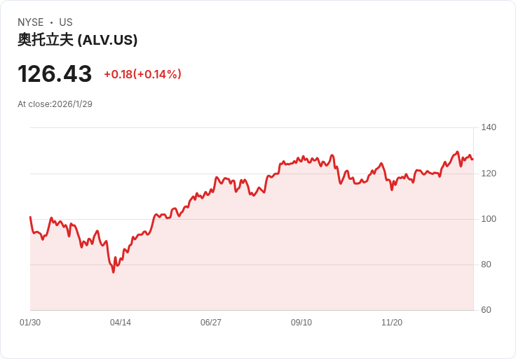 Autoliv公佈第四季財報,非GAAP每股盈餘達3.19美元,超出預期;同時發布2026年財測,顯示增長放緩。