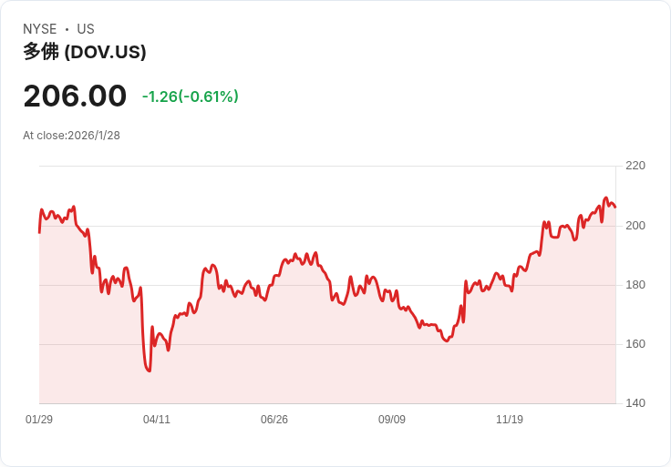 Dover公司近日發布了其第四季的財報,顯示出穩健的業務表現。該公司的非GAAP每股盈餘為2.51美元,超出分析師預測的0.02美元,而營收則達到21億美元,同比增長8.8%,同樣高於市場預期10百萬美元。根據Dover的預估,2026年的GAAP每股盈餘將在8.95至9.15美元之間,而調整後的每股盈餘預計為10.45至10.65美元,這反映出公司對未來成長持有信心。然而,儘管目前的數字令人鼓舞,但市場仍然關注Dover的增長速度是否能夠加快,以應對即將面臨的挑戰。有分析指出,若無法提升增長動能,可能會影響投資者的信心。在此背景下,Dover需進一步強化其業務策略,以維持競爭力並滿足市場期待。