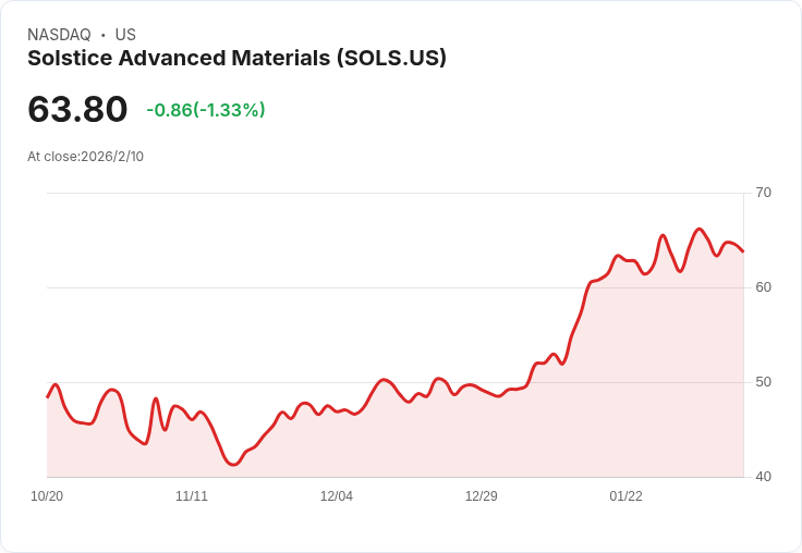 索爾斯提斯高級材料公司公佈第四季財報,GAAP每股盈餘達0.26美元,營收為9.87億美元,並預測2026年淨銷售將達39至41億美元。
