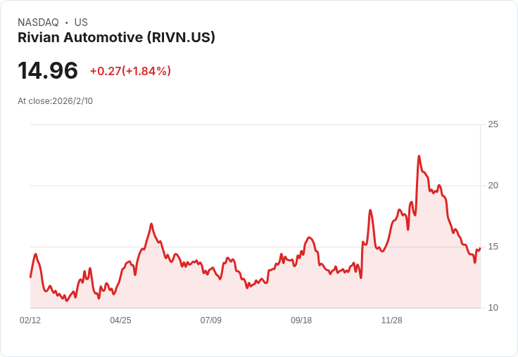 隨著電動車稅收抵免的取消和備受期待的R2中型車即將推出,Rivian(RIVN)將在週四市後發布第四季財報,引發市場廣泛關注。根據彭博社的共識預測,該公司預計本季度營收為12.6億美元,同比下降27%。同時,調整後每股虧損預期為0.69美元,EBITDA虧損達5.682億美元,是去年277萬美元虧損的兩倍。