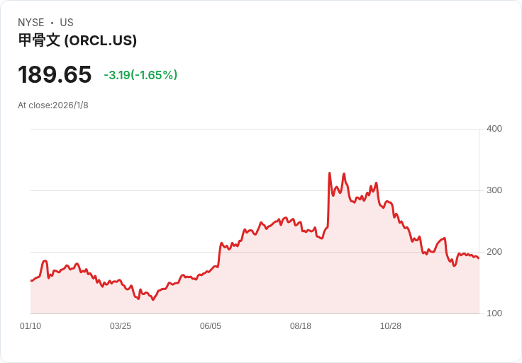 Oracle Corporation (NYSE:ORCL) 最近成為市場關注的焦點。UBS在1月5日重申了該股“買入”評級,但同時將其目標價格從325美元下調至280美元。這一決定反映出投資者對Oracle未來展望的信心下降,特別是在OpenAI前景不明朗的情況下,Oracle自去年9月中以來股價已修正41%。