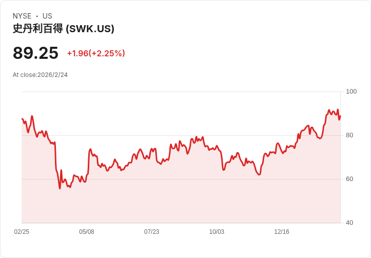 史丹利百得(SWK)宣佈每股0.83美元的季度股息,並將於3月24日支付,顯示出其穩定的財務表現。