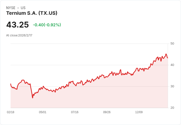 在剛公佈的2025年第四季財報中,鋼鐵製造商Ternium(TX)每股盈餘(EPADS)為0.62美元,較市場預期低了0.28美元,顯示公司在競爭激烈的環境中仍面臨困難。該季度的總營收為37.7億美元,同比下降2.8%,同樣未能滿足分析師的預測,少了1000萬美元。