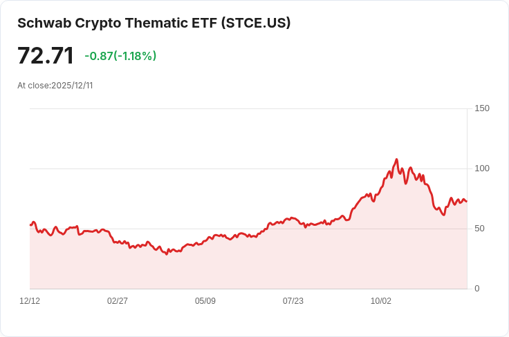 施瓦布加密主題ETF(STCE)近日正式宣佈將在12月16日支付每股$1.1340的半年度分配金,此訊息無疑吸引了許多投資者的目光。根據最新資料,截至9月12日,該ETF的30天SEC收益率為-0.03%,顯示出其面臨的一些挑戰。