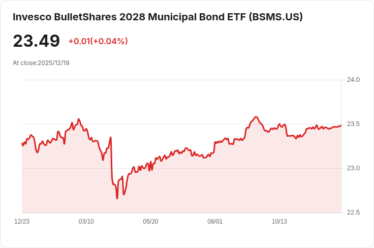 近期,Invesco BulletShares 2028市政債券ETF(程式碼:BSMS)公佈了其最新的股息資訊,每股將支付0.0530美元。根據公告,此次股息將於12月26日支付給截至12月22日登記的股東,而在12月22日為除息日。這一訊息不僅對現有投資者具有積極意義,也可能吸引更多潛在投資者的注意。