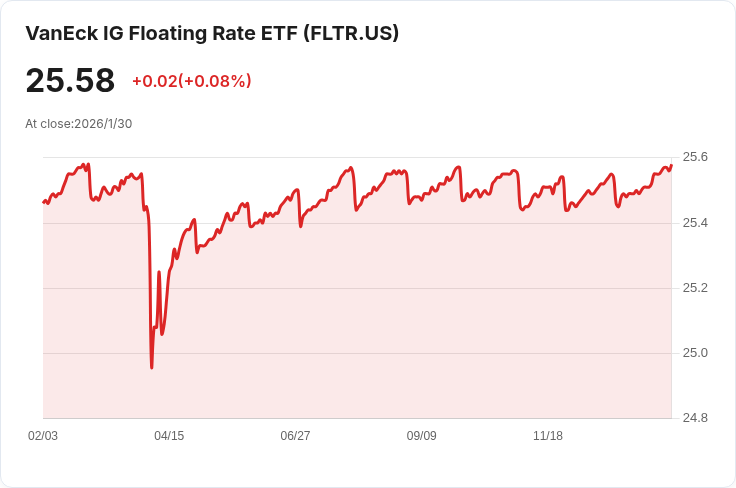 VanEck Vectors 投資級浮動利率ETF (FLTR) 宣佈將於2月5日支付每股$0.0947的分配金,30天SEC收益率為4.35%。