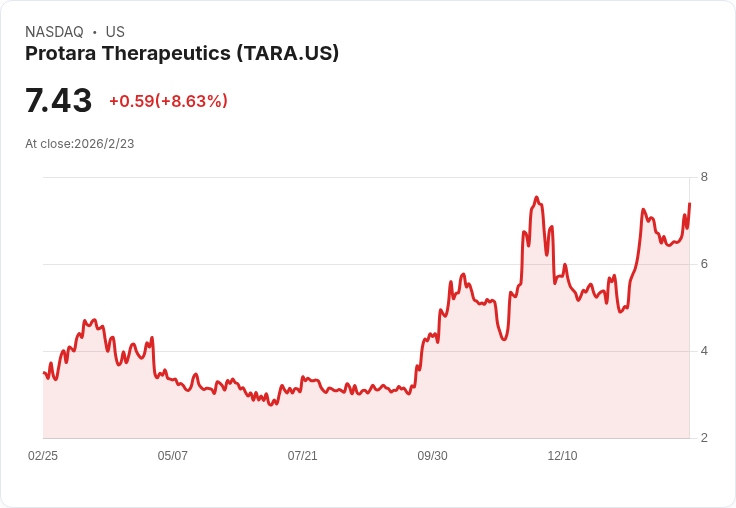 Protara Therapeutics因其主要候選藥物TARA-002的中期試驗資料不如預期,股價大幅下滑22%。公司仍計劃於2026年啟動後續臨床試驗。