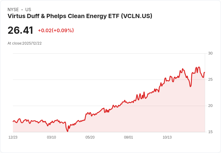 Virtus Duff & Phelps 清潔能源ETF 宣佈將於12月29日支付每股$0.3256的半年度分配,吸引投資者關注。