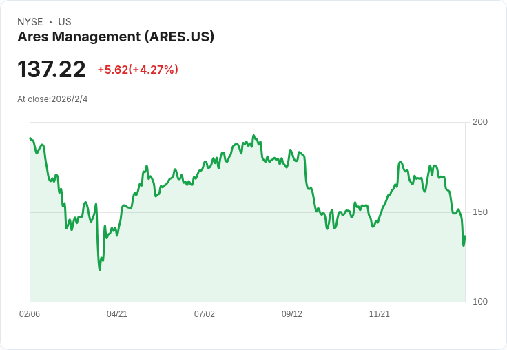 Ares Management Corporation是一家全球領先的替代資產管理公司,專注於信貸、私募股權和房地產等多元化投資策略。公司成立於1997年,總部位於美國洛杉磯,致力於為機構和個人投資者提供創新的投資解決方案。截至2025年底,Ares的資產管理規模超過6000億美元,並在全球擁有廣泛的投資平臺和地理覆蓋。