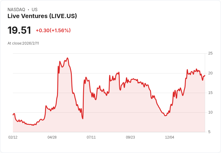 Live Ventures 公佈第一季財報,每股虧損0.02美元,營收較去年下降2.7%,顯示公司在成本控制與利潤率上的持續努力。