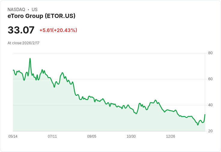 eToro公佈超預期的第四季財報,股價大漲18%,並擴大股票回購計畫100M美元。