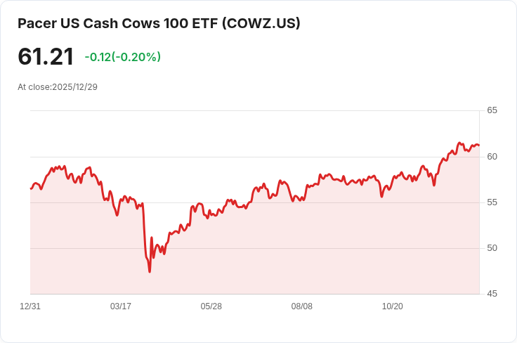 Pacer US Cash Cows 100 ETF (COWZ) 宣佈將於明年1月5日支付每股$0.6167的季度股息,登記日期為12月30日。