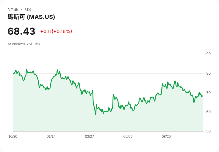 Masco Corporation是一家領先的家居建材和產品製造商,總部位於美國。公司專注於提供高品質的廚房、浴室及其他家居裝飾產品,旗下品牌包括Delta Faucet、Behr Paints等。Masco以其創新設計和卓越的客戶服務而聞名,致力於透過不斷改進產品和擴大市場份額來推動業務增長。