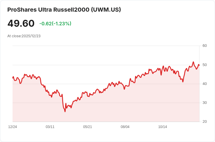 在即將到來的聖誕節假期前夕,ProShares Ultra Russell2000 (UWM) 宣佈其最新的季度分配金額為每股$0.1952。這項分配將在2023年12月31日支付,而登記股東的截止日期則定於12月24日。此外,該股票的除息日也設定在同一天,即12月24日。此舉對於持有UWM的投資者而言,是一個值得注意的訊息,因為它顯示出該基金仍然維持穩定的現金流和回報能力。在市場上,其他公司如Genasys、BlackBerry及VOOV等也受到關注,但目前的焦點無疑集中在ProShares Ultra Russell2000的分配決策上。隨著交易日進入聖誕假期,市場整體表現略顯平靜,未來幾周的動向將成為投資者密切關注的重點。