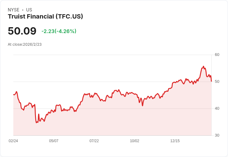 Truist Financial預期2026年財務穩定增長,若成功實現貸款成長及降低存款成本,股價或將上漲。