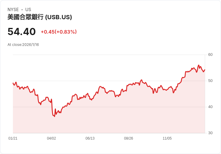 U.S. Bancorp是一家美國大型金融服務公司,提供廣泛的銀行產品和服務,包括消費者和商業銀行、支付服務、財富管理和投資銀行服務。公司致力於透過創新和高效的運營來提升客戶體驗,並在全國擁有廣泛的分支機構網路。U.S. Bancorp以其穩健的財務狀況和多元化的收入來源而聞名,是美國最大的銀行控股公司之一。