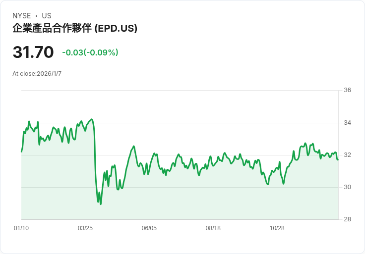 企業產品合作夥伴(EPD)近日宣佈,每股季度股息由$0.545提升至$0.55,增幅達0.9%。這一變動使得該公司未來的預期收益率高達6.93%。根據公告,此次股息將於2月13日支付給截至1月30日的股東,而1月30日為除息日。