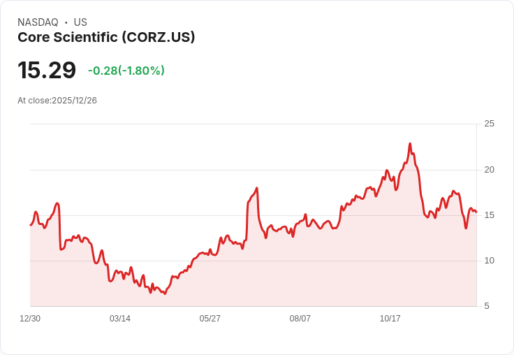 根據最新資料,Core Scientific目前市值約47.4億美元,過去一年股價上漲5.5%,但仍低於標普500指數的15%增幅。該公司專注於數字資產挖礦和區塊鏈基礎設施服務,並且正在從單純的位元幣挖礦轉向更具多樣化的託管及計算服務。
