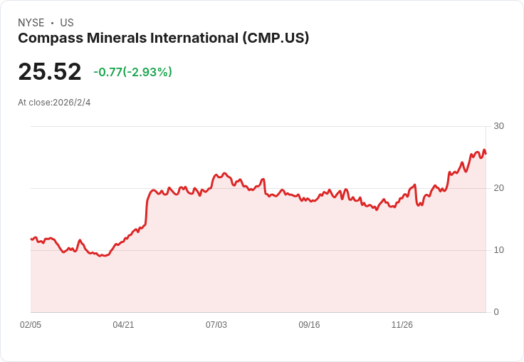 在最新發布的財報中,Compass Minerals International, Inc.(CMP)顯示其2023年第一季非GAAP每股盈餘為0.43美元,驚喜地超出分析師預期的0.26美元。該公司營收達到396.1百萬美元,較去年同期增長28.9%,且超過市場預估62.52百萬美元。這一表現不僅反映了公司的強勁增長,也凸顯了其在礦產行業中的競爭力。