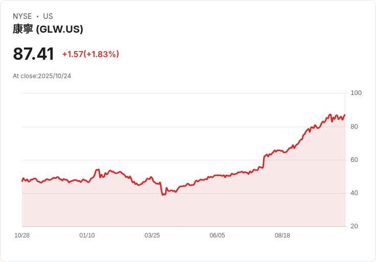 隨著科技需求的持續增長,康寧(Corning, NYSE: GLW)即將在10月28日開盤前發佈其第三季財報,引起市場廣泛關注。根據華爾街分析師的預測,康寧本季度的每股盈餘將達到0.66美元,相較於去年同期增長超過22%。同時,預計該公司的營收將達到42.4億美元,年增約13%,顯示出強勁的業務表現。