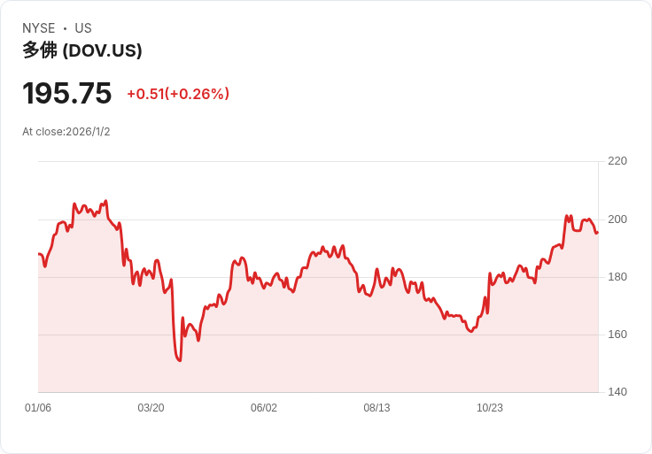 根據UBS於1月4日發布的研究報告,該行已將Dover Corporation (DOV) 的股票評級從中立上調至買入。分析師Steven Fisher指出,隨著有機增長前景改善、週期性逆風減弱,以及相對於整體工業部門被低估的估值,Dover的未來表現值得期待。他表示,預計Dover的增長模式將在經歷兩年的週期性壓力後,在2026年顯著加強。