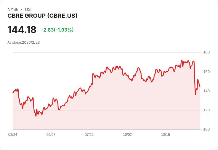 CBRE Group(CBRE)近期獲得UBS的強力推薦,評級由「中立」提升至「買進」,目標價也隨之上調至185美元。當前CBRE股價約145美元,較20日簡單移動平均低約11%。UBS分析師Alex Kramm與Nassime Bildman表示,投資者普遍擔心人工智慧(AI)可能取代商業房地產經紀人,以及更廣泛的AI趨勢可能導致白領工作流失,進而影響辦公空間需求。然而,分析報告認為CBRE在行業中的強大地位及豐富資料資源使其能夠受益於這些變化。