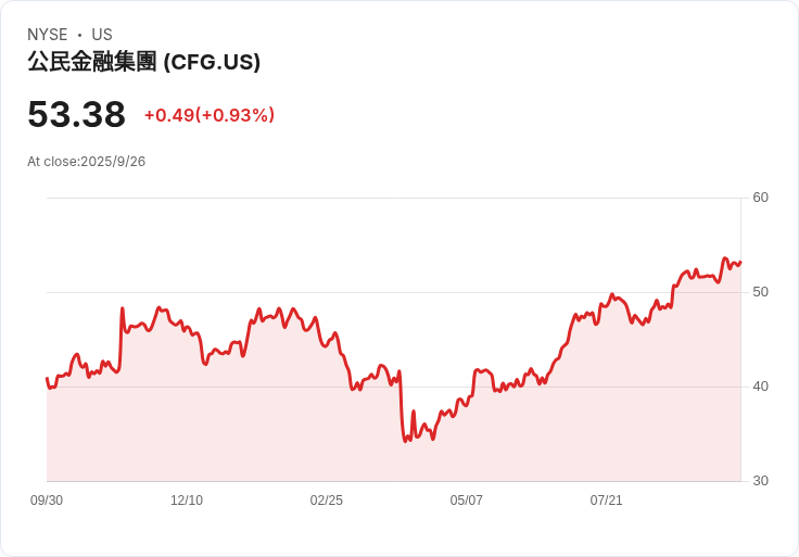 摩根士丹利最新分析指出,Citizens Financial Group(NYSE:CFG)因其回報率表現出色而受到升級。該行分析師Manan Gosalia和Brian Wilczynski表示,展望到2027年,Citizens Financial的實物普通股權回報率(ROTCE)有望從2025年第二季的11%提升至15%,這一強勁成長故事使得該股票更具吸引力。他們相信,隨著市場對可持續高回報率的信心增加,該公司與同行之間的估值差距將逐漸縮小。因此,Morgan Stanley將該股的投資建議由「平等」上調為「增持」,並將目標價從53美元提高至71美元。