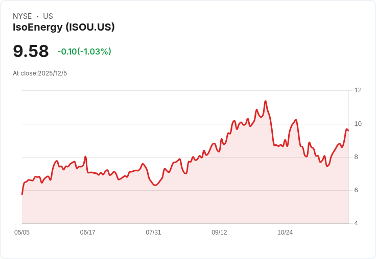 IsoEnergy Ltd.(NYSEAMERICAN:ISOU)的股價在2025年11月28日至12月5日之間暴漲了9.85%,成為本週表現最佳的能源股票之一。該公司是一家全球領先的鈾生產商,在加拿大、美國和澳洲擁有豐富的礦藏資源。