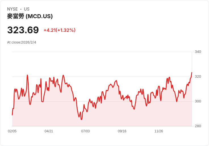 麥當勞宣佈季度股息為每股1.86美元,並將於3月17日支付,此舉顯示出其持續的財務穩健性。