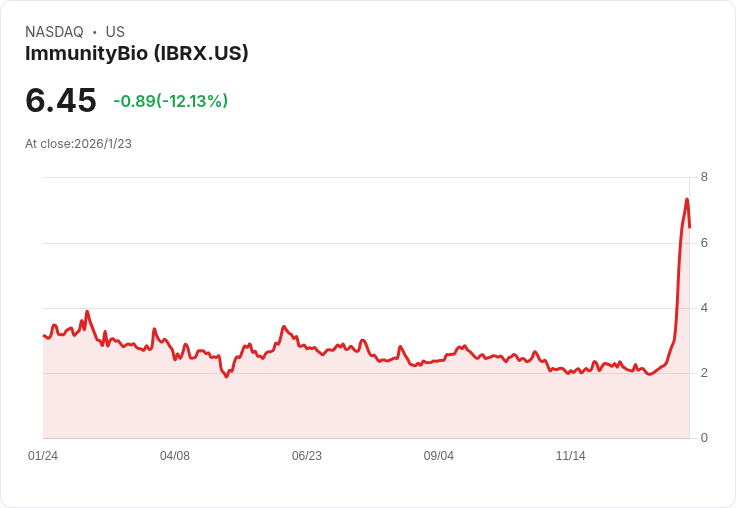 隨著市場的波動,免疫專注的生技公司ImmunityBio(NASDAQ:IBRX)於上週五收盤時報6.45美元,下跌12.13%。儘管如此,該股在過去五天內仍上漲63.29%,並在過去一個月中實現207.14%的驚人增長。交易量達7460萬股,較三個月平均量高出238%。