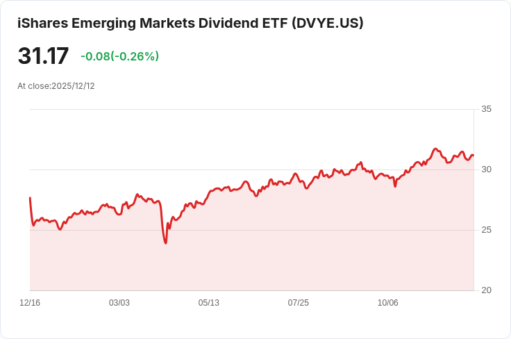 iShares新興市場高股息ETF (DVYE) 宣佈將發放每股$0.4201的季度股息,吸引投資者關注其5.08%的收益率。